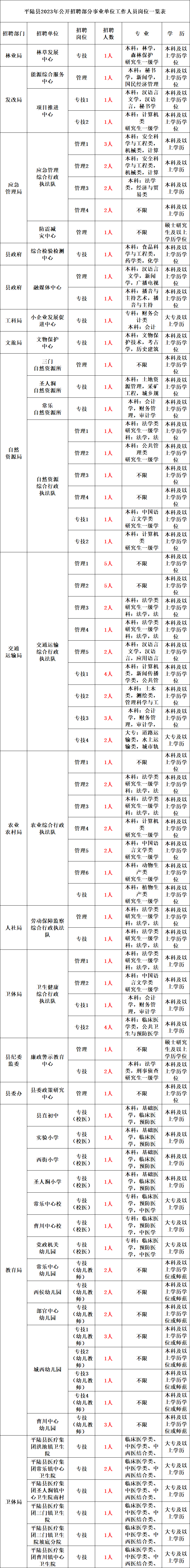 1、《平陆县2023年公开招聘部分事业单位工作人员岗位一览表》.xls