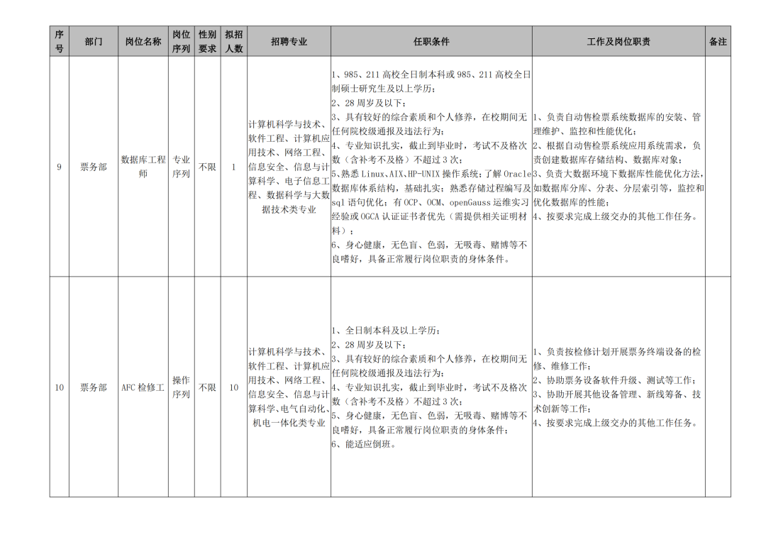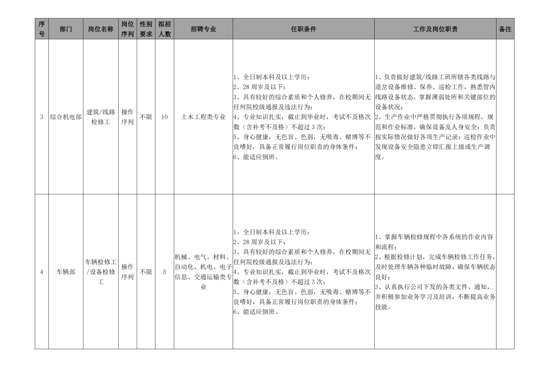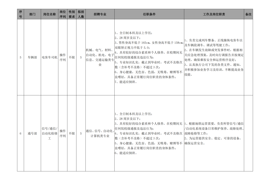 3.身高:考虑到公司岗位需要,站务类岗位和司机类岗位须对身高有要求,具体如下: