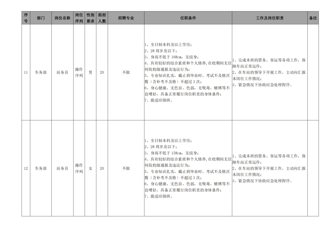 (1)站务类:男性净身高不低于168cm;