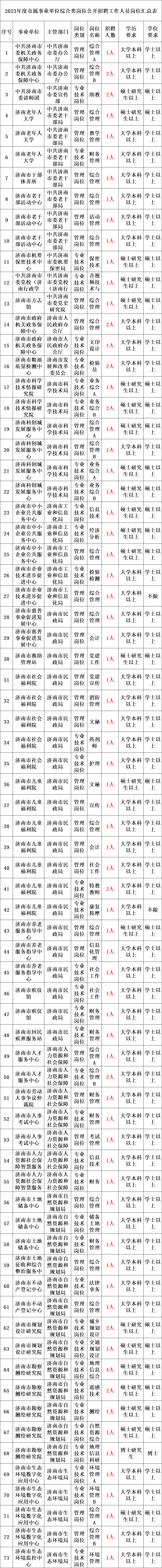 2023年度市属事业单位综合类岗位公开招聘工作人员共计362人,招聘的岗位条件、人数等具体要求见《2023年度市属事业单位综合类岗位公开招聘工作人员岗位汇总表》。