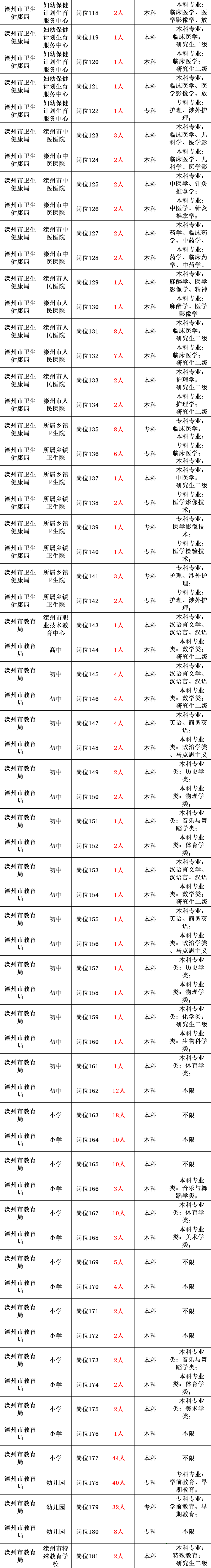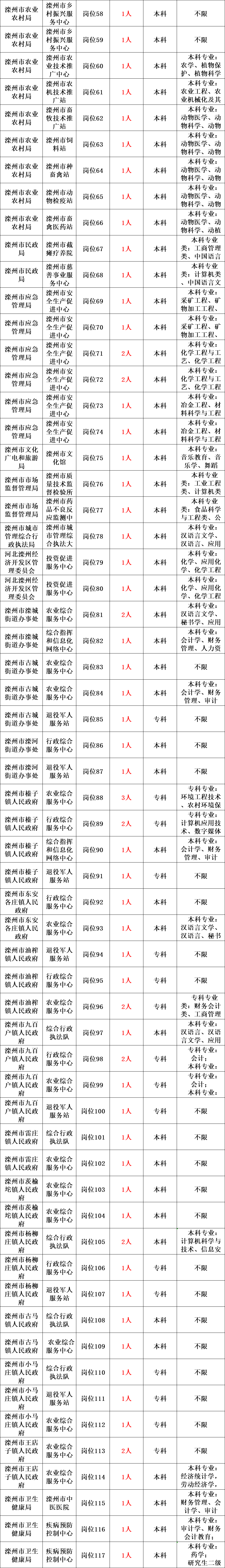 参加本次公开招聘的事业单位共招聘工作人员452名,其中市直、镇街事业单位综合类143名、医学类65名、教育类244名。各招聘单位的拟招聘人数、岗位条件等详见《滦州市2023年事业单位公开招聘工作人员岗位信息表》(附件,以下简称《岗位信息表》)。