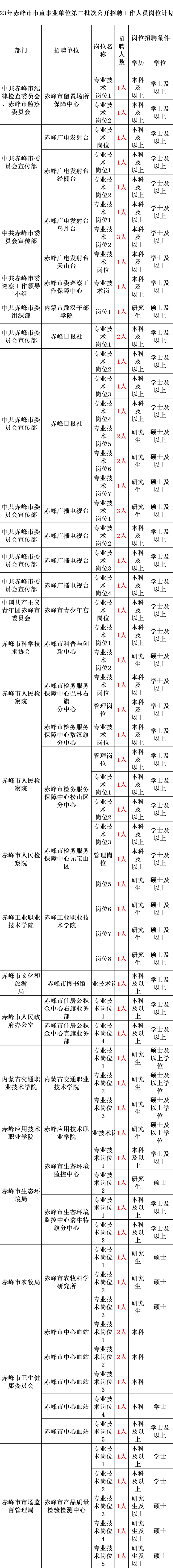 赤峰市市直事业单位和12个旗县区事业单位公开招聘323名在编工作人员。