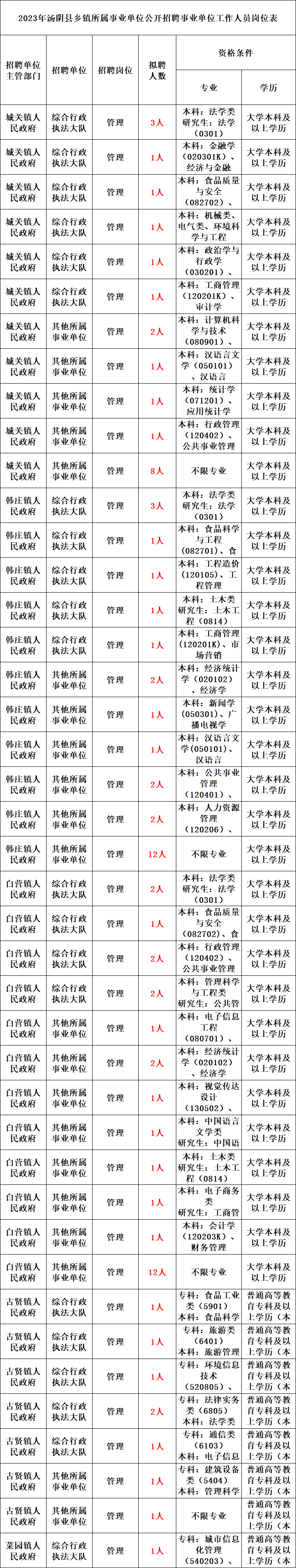 根据人员编制、岗位空缺和工作需要,共招聘事业单位工作人员314名。其中,综合类事业单位工作人员183名、教育类事业单位工作人员36名、卫生类事业单位工作人员95名。具体招聘单位、岗位、数量及条件等详见《2023年清丰县事业单位公开招聘岗位信息表》(以下简称《岗位信息表》,见附件1)。
