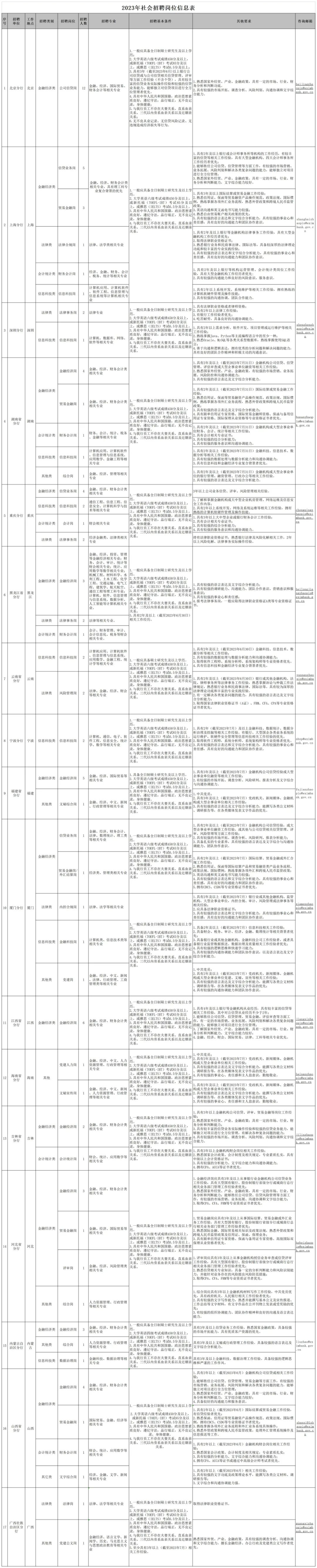 本次开展招聘的分支机构为:北京、上海、深圳、湖南、重庆、黑龙江、云南、宁波、福建、厦门、江西、海南、吉林、河北、内蒙古、山西、广西17家分行,各机构工作地点、招聘岗位、应聘条件详见附件。