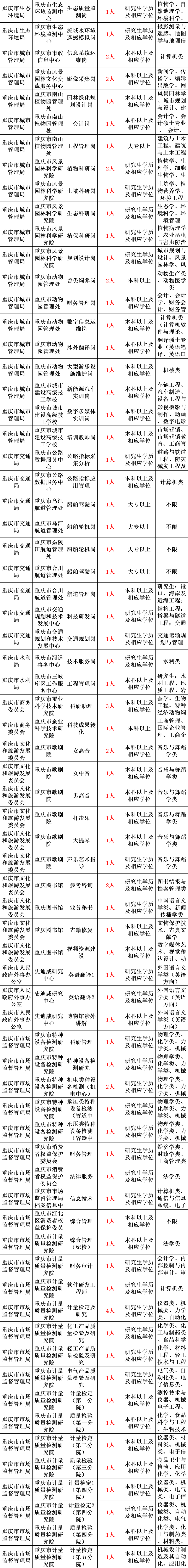 为优化人才结构,加强事业单位人才队伍建设,根据《事业单位人事管理条例》(国务院令第652号)、《重庆市事业单位公开招聘人员实施办法》(渝人发〔2006〕44号)和《关于进一步规范事业单位公开招聘工作的通知》(渝人社发〔2011〕326号)等规定,重庆市属事业单位决定面向社会公开招聘一批工作人员。现将有关事宜公告如下: