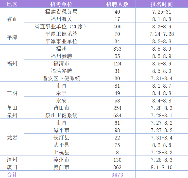 目前福建事业单位联考共计招聘3473人