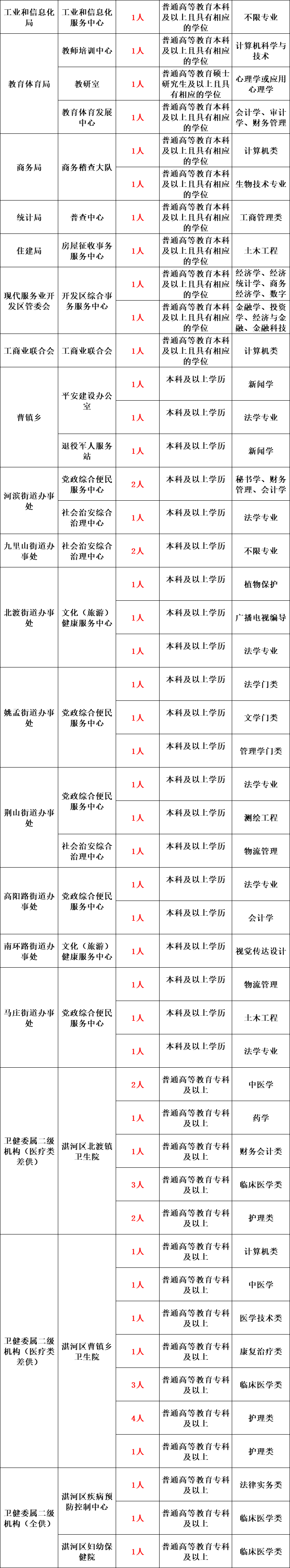 具体招聘单位、岗位、专业、人数和资格条件详见《平顶山市湛河区2023年事业单位公开招聘岗位设置一览表》