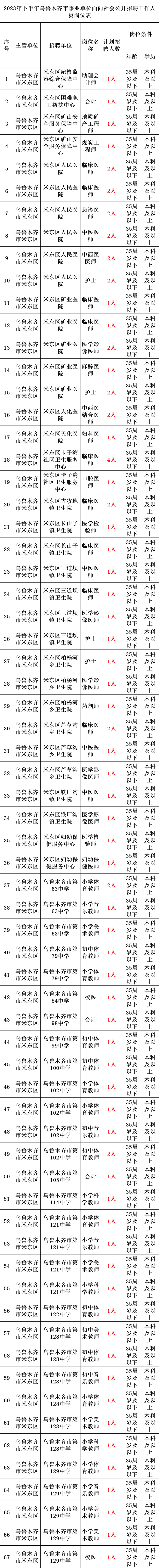 计划招聘569人,具体岗位详见《2023年下半年乌鲁木齐市事业单位面向社会公开招聘工作人员岗位表》(以下简称《岗位表》)(附件1)。